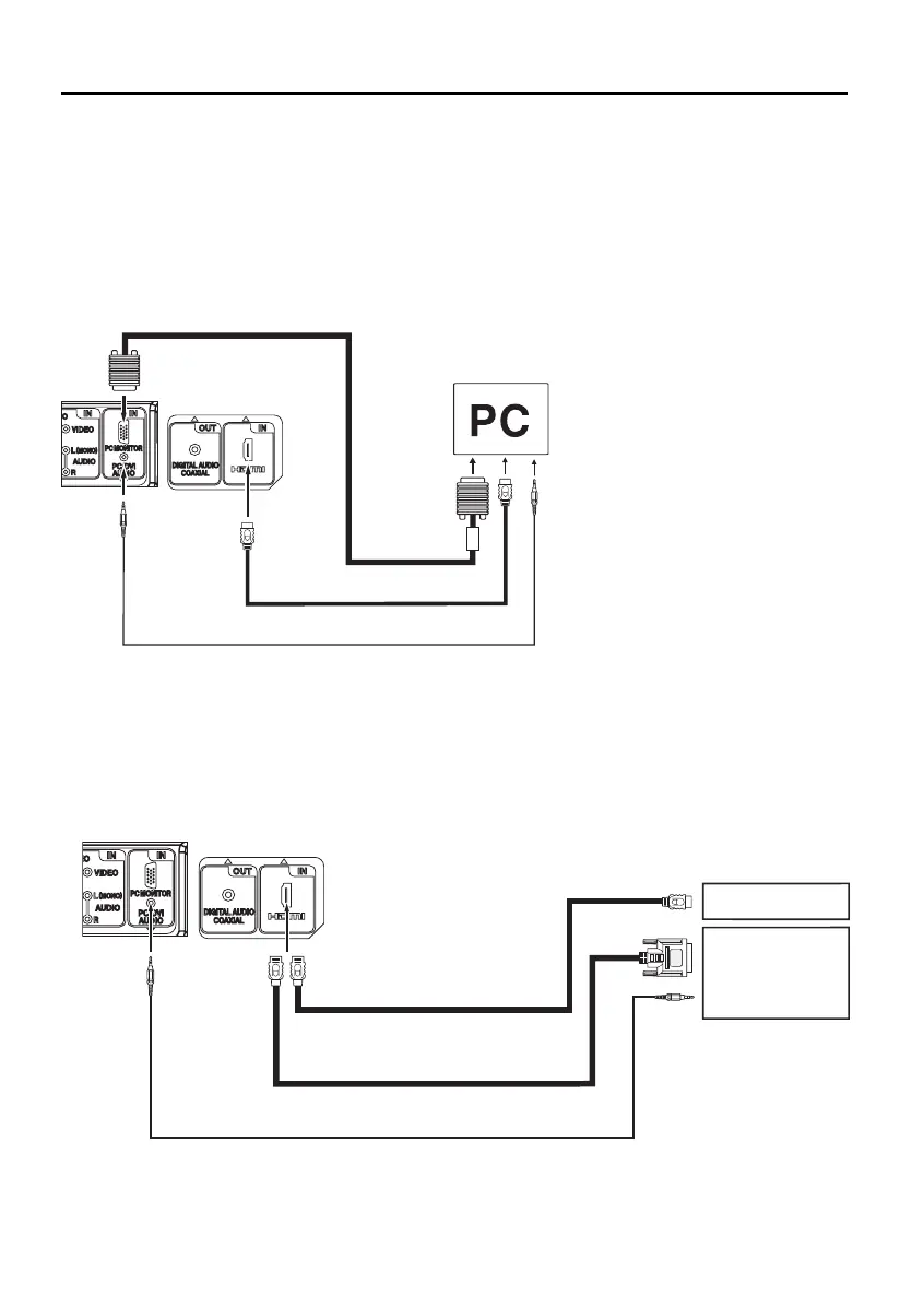pouvez aussi raccorder le PC avec un câble HDMI. Si vous utilisez un câble HDMI, vous n’avez pas à raccorder