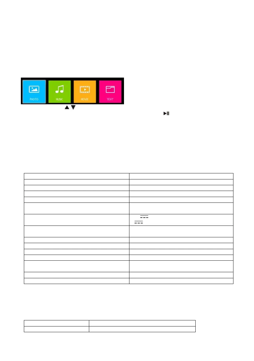 Prima o botão ◄/► / para destacar Foto (photo), Música (music), Filme (movie) e Texto