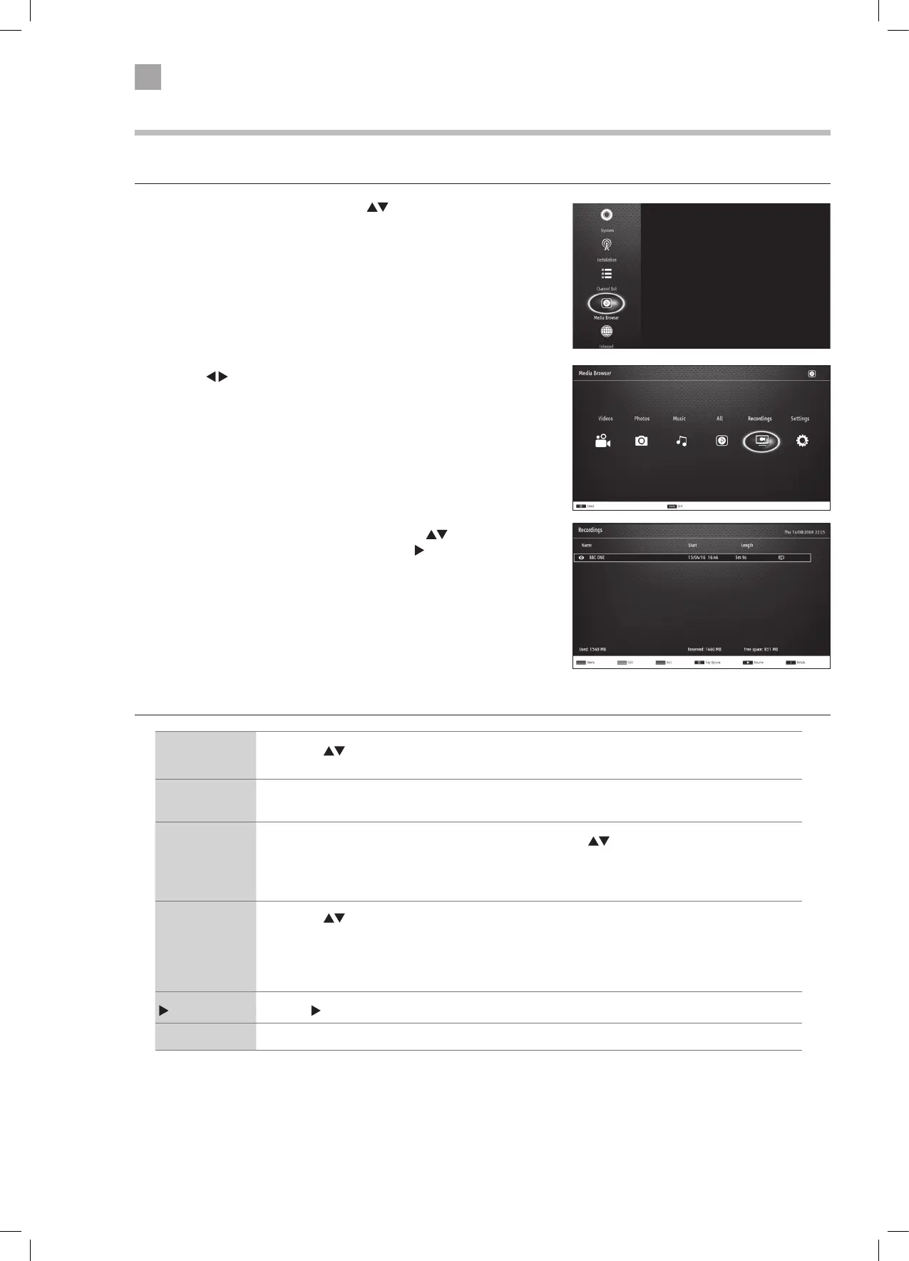 buttons to select the recording that you wish to play then press OK. The PLAY