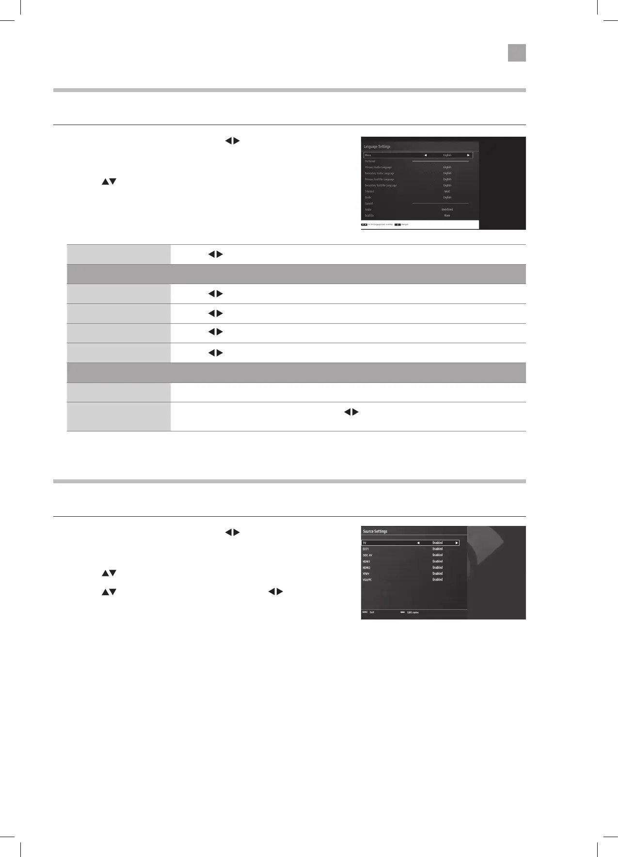 Allows you to select your desired language settings for your TV.