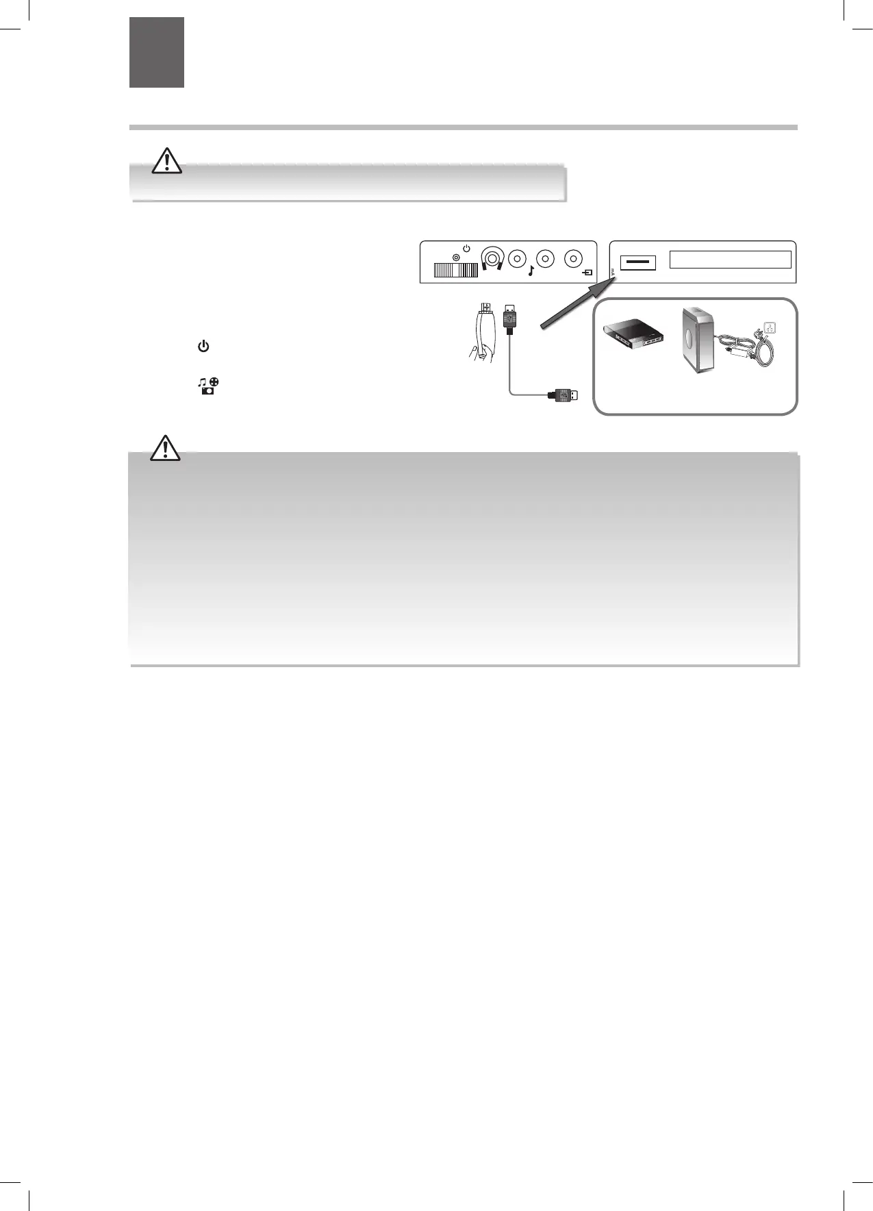 • Some versions of portable hard disk may require more power than the TV USB socket can provide. To ensure correct