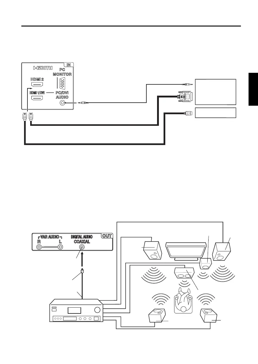 sélectionner la source d’entrée audio correspondante (HDMI ou DVI) à l’écran de menu (reportez-