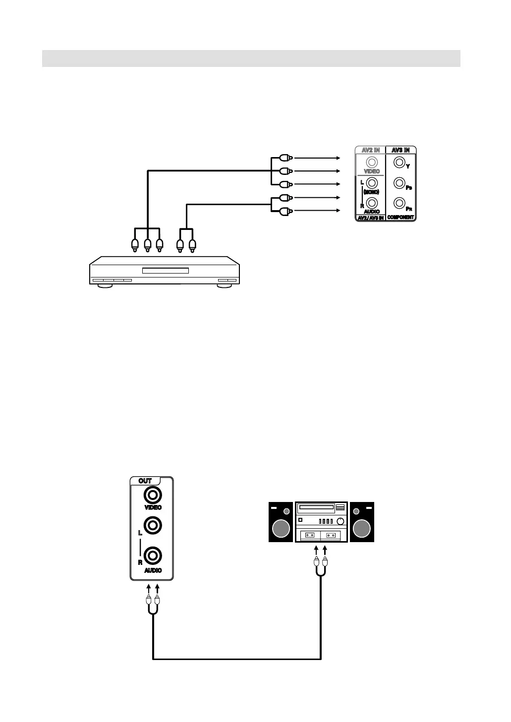 Apenas os sinais áudio AV1/AV2 e TV constituem saídas para tomadas de saída Áudio.