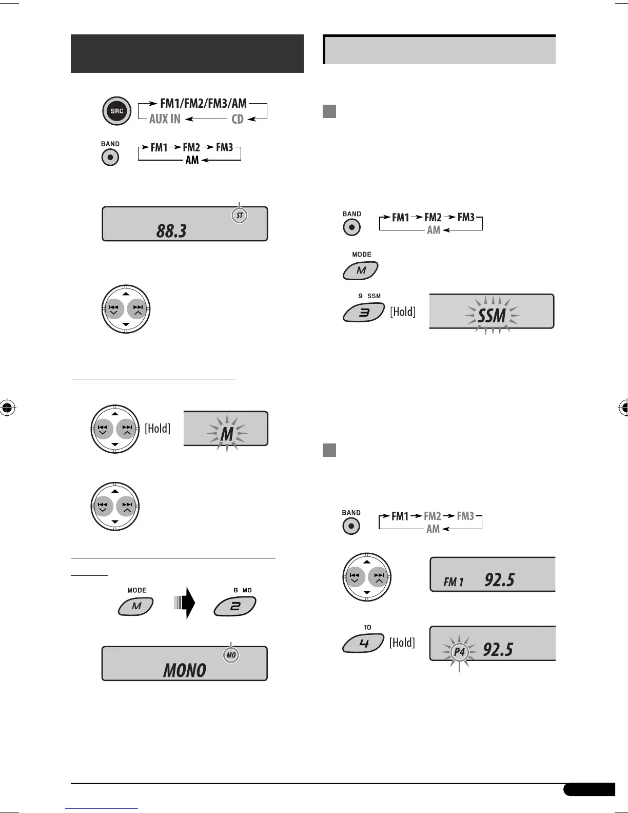Ex.: Storing the FM station of 92.5 MHz into preset