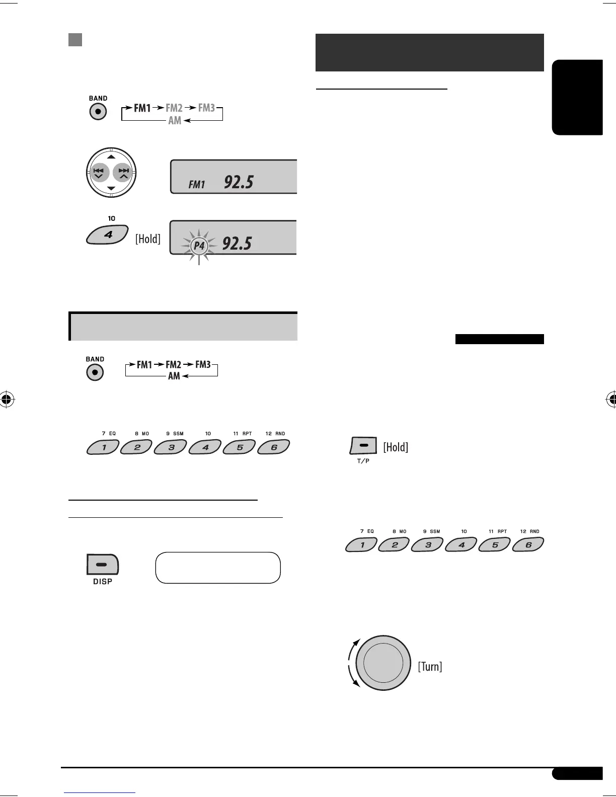 Ex.: Storing the FM station of 92.5 MHz into preset