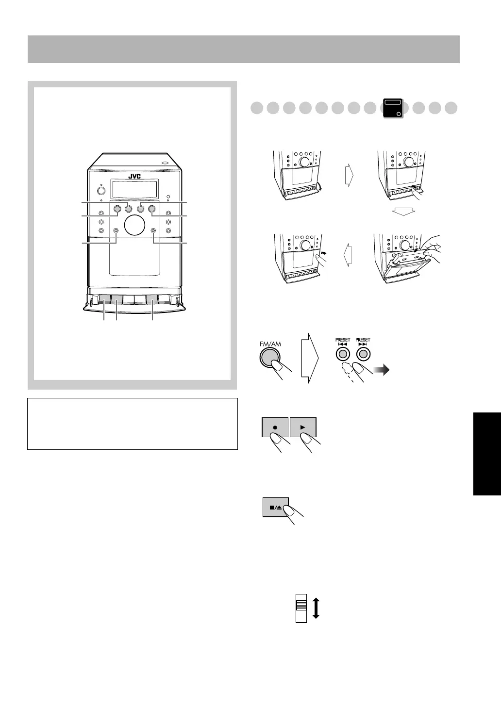 1 Aseta kasettipesään äänityskelpoinen kasetti.
