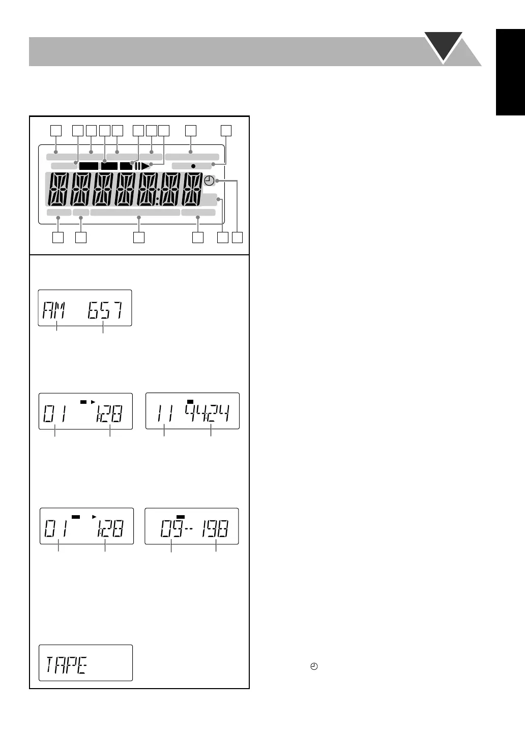 • MHz: Se enciende para indicar la frecuencia de FM.
