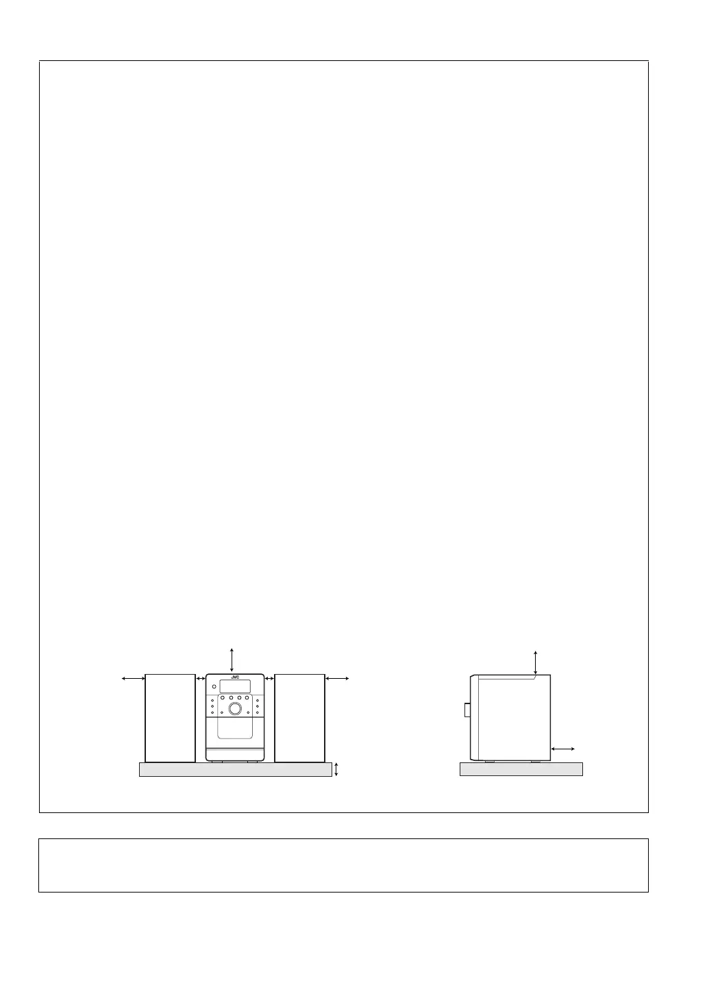 2. Sivuilla/päällä/takana: Laitteiston ympärillä on oltava vapaata tilaa alla olevien mittojen mukaisesti.