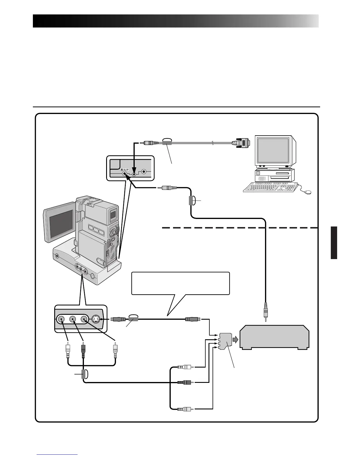 n Udfør ikke nogen tilslutninger til camcorderens DV OUT-konnektor.