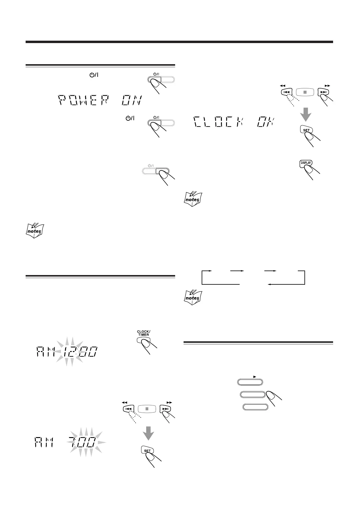 “CLOCK” flashes on the display, then “AM 12:00”