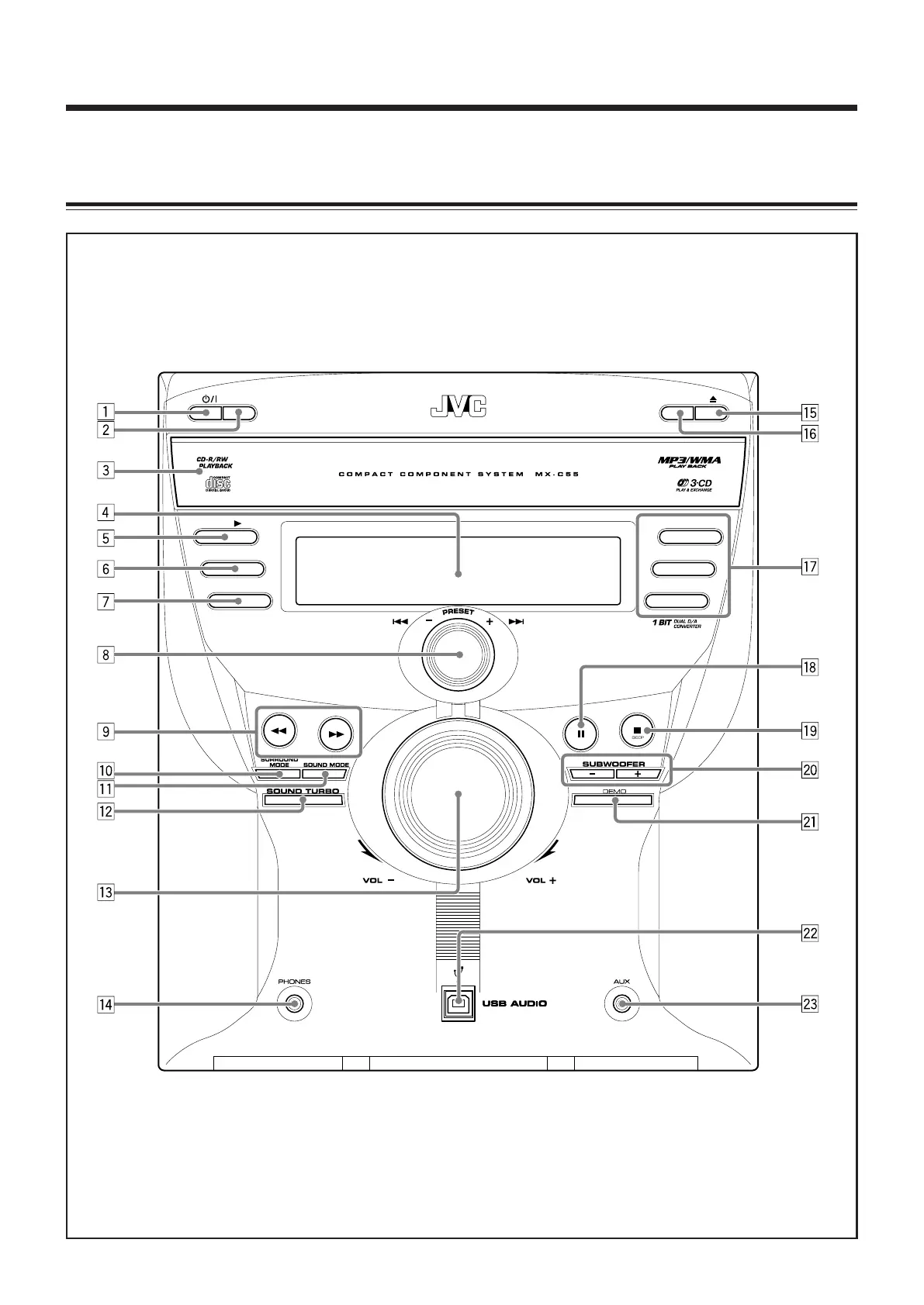 JVC MX-C55 - Location of the Buttons and Controls; Front Panel