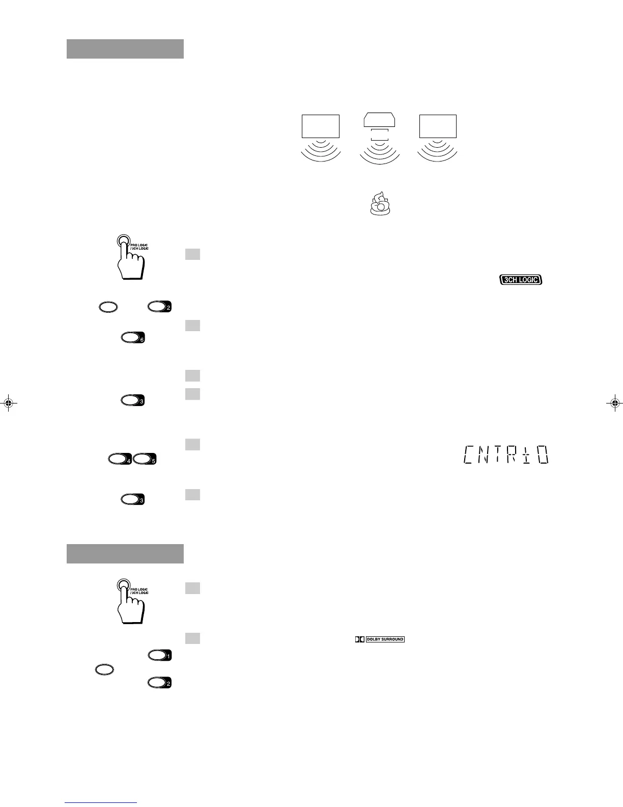 Control, press the Dolby Surround buttons (PRO LOGIC (1) or 3CH LOGIC (2)) after pressing SHIFT.