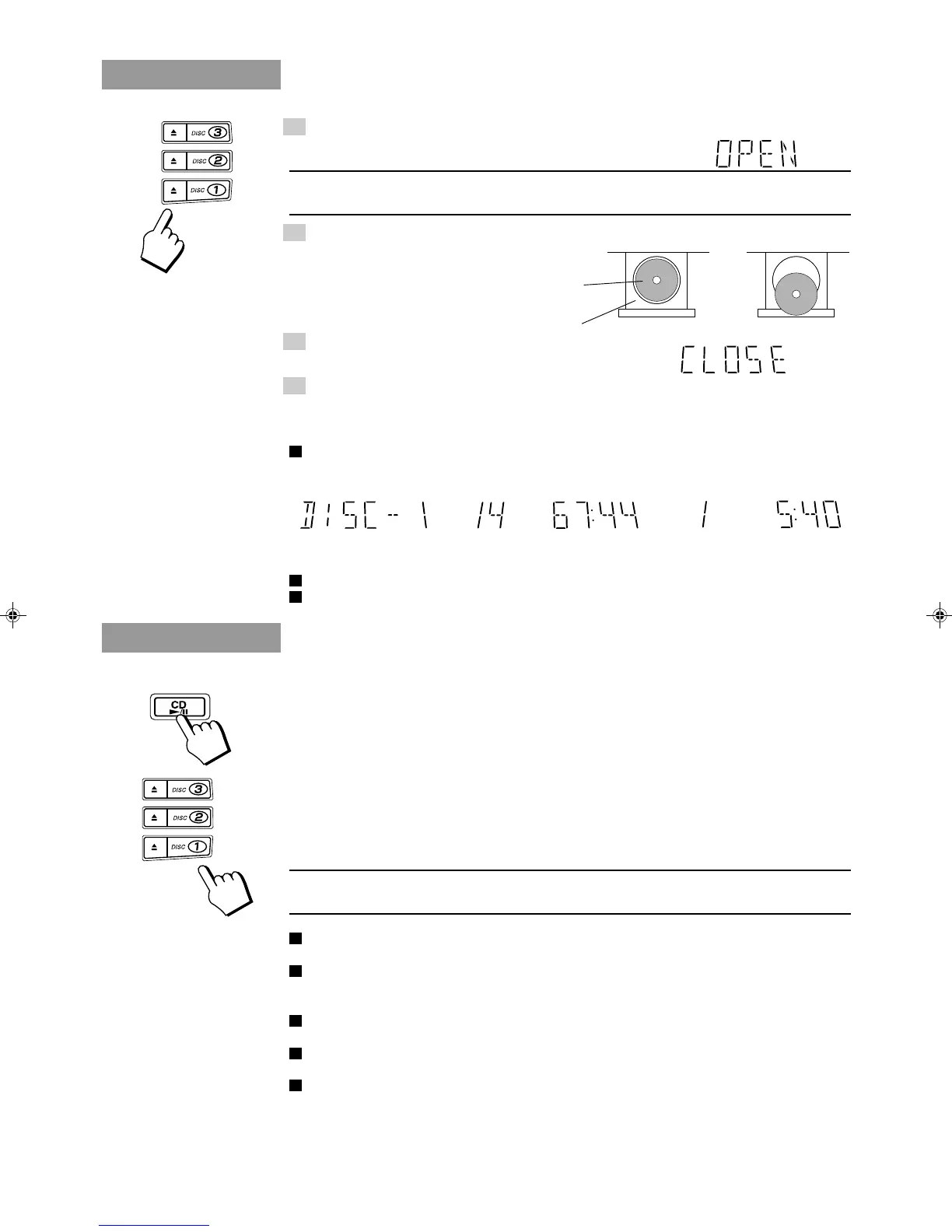 When you press CD £/8 or DISC (1 to 3) while the disc tray is open, the tray will automatically