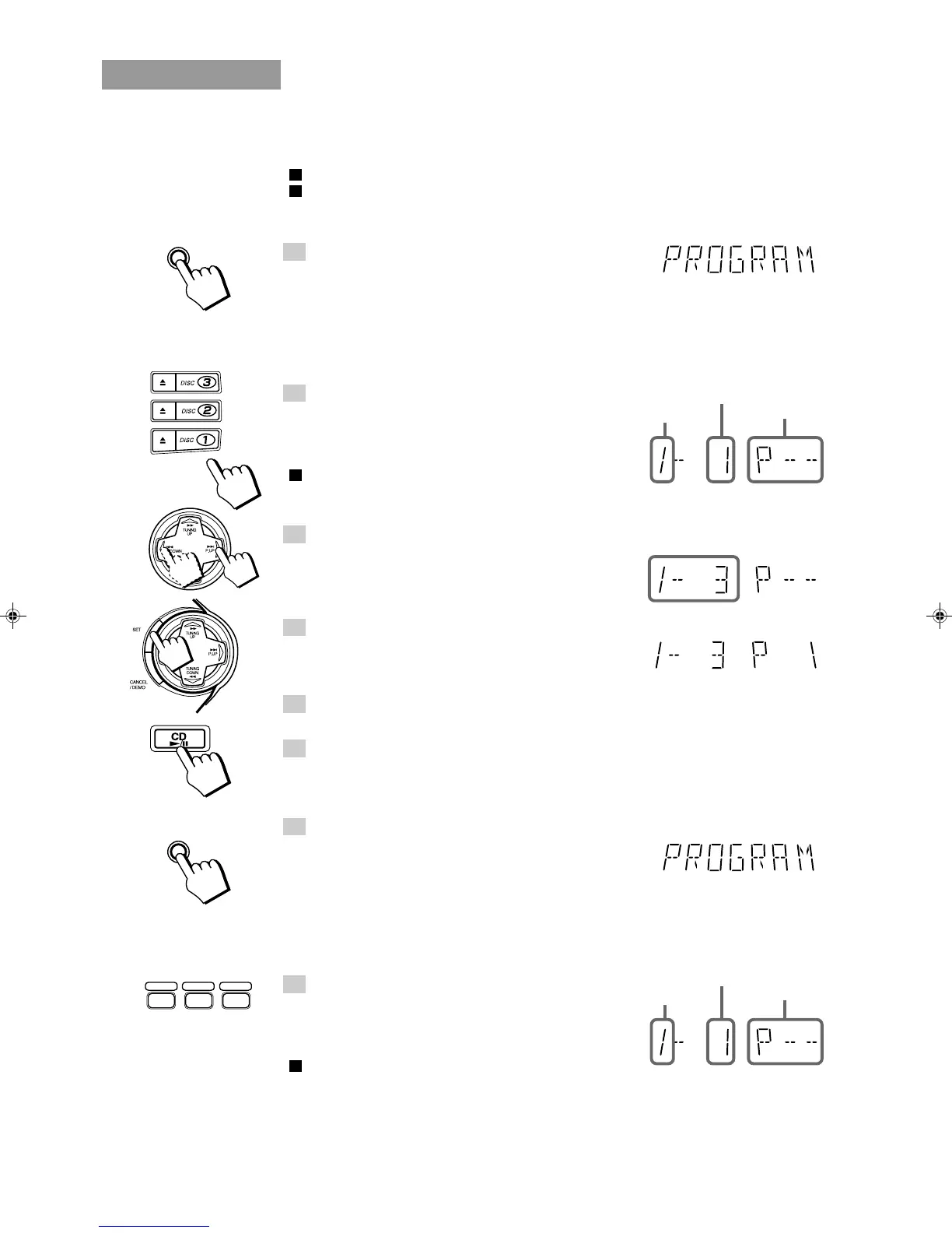 = PROGRAM = RANDOM = No Play mode indicator (Continuous Play) = (back to the