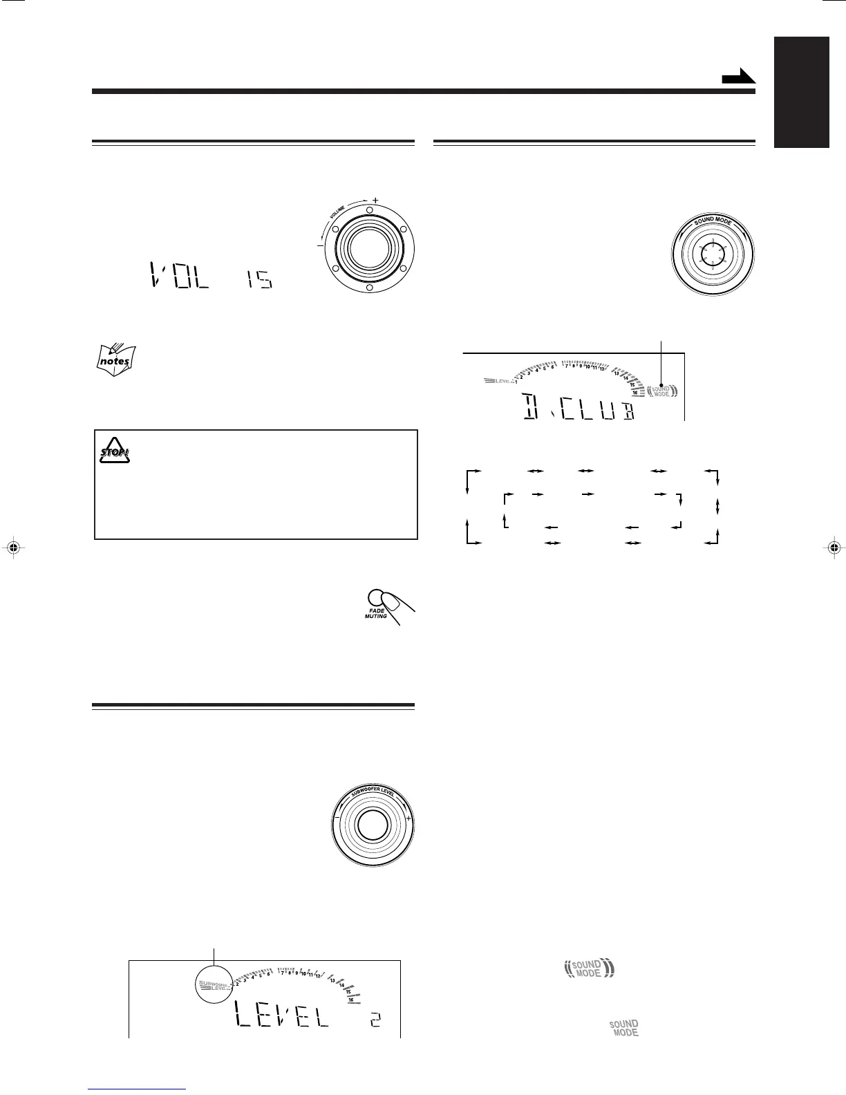 Turn SUBWOOFER LEVEL + / –