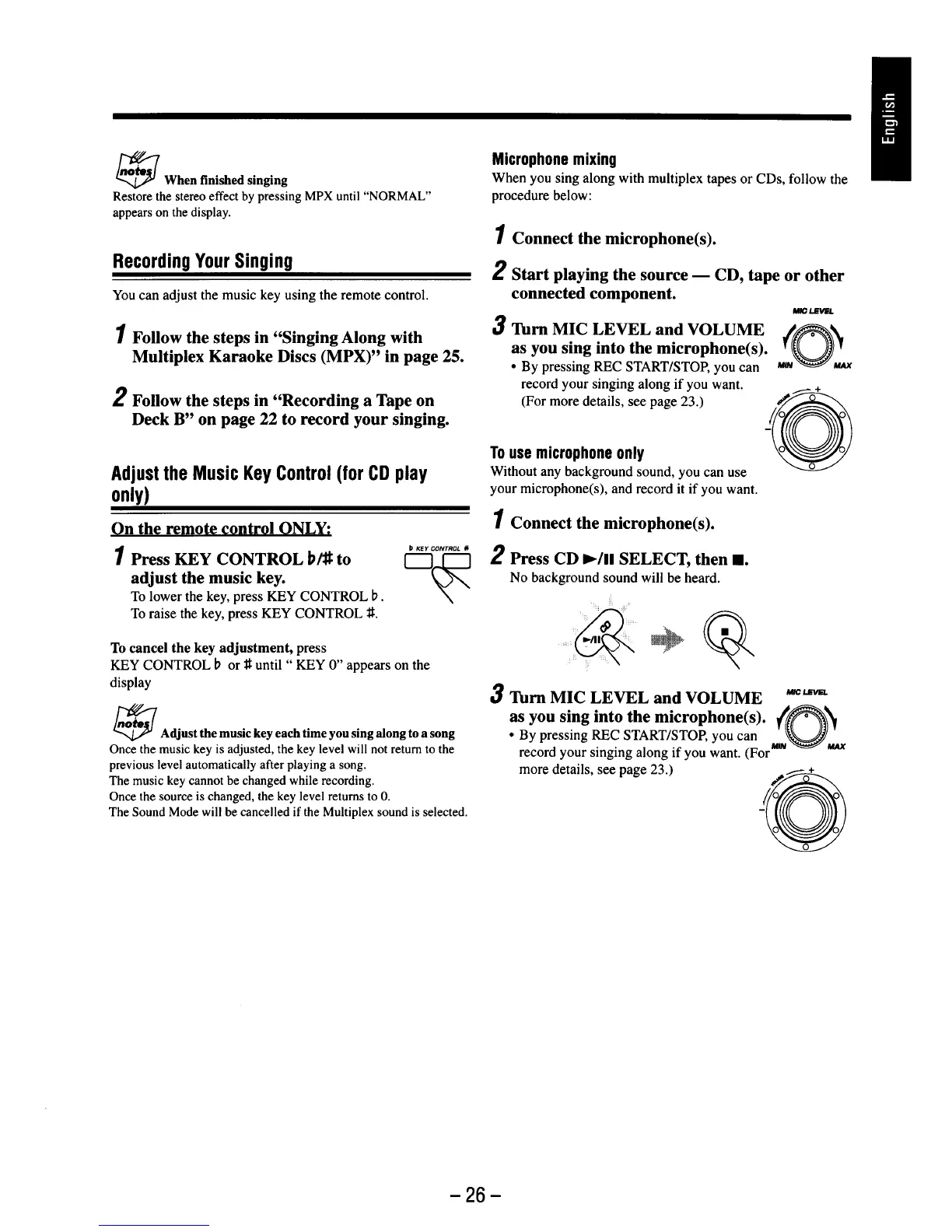 JVC MX-G75VUN - Recording Your Singing; Adjust the Music Key Control (for CD Play Only)