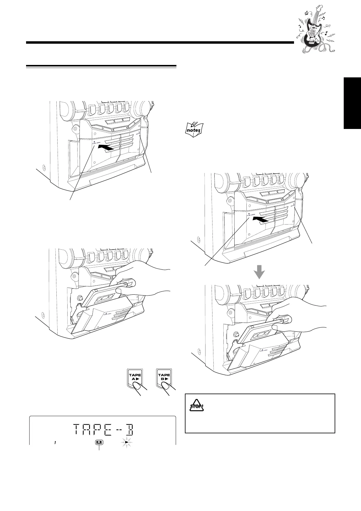 Pour retirez la cassette, appuyez sur 0 pour la platine A ou B.