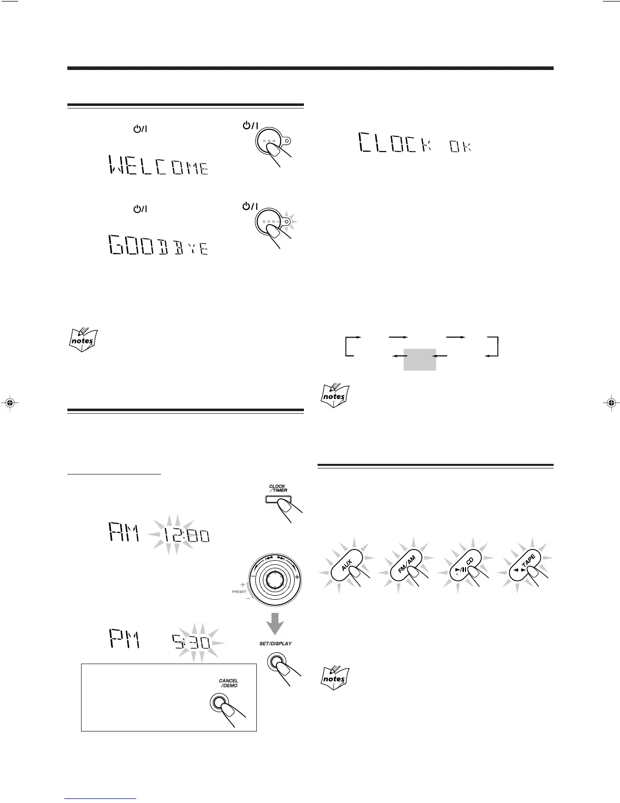 (FM/AM, CD 3/8, TAPE 2 3, and AUX), the unit turns on