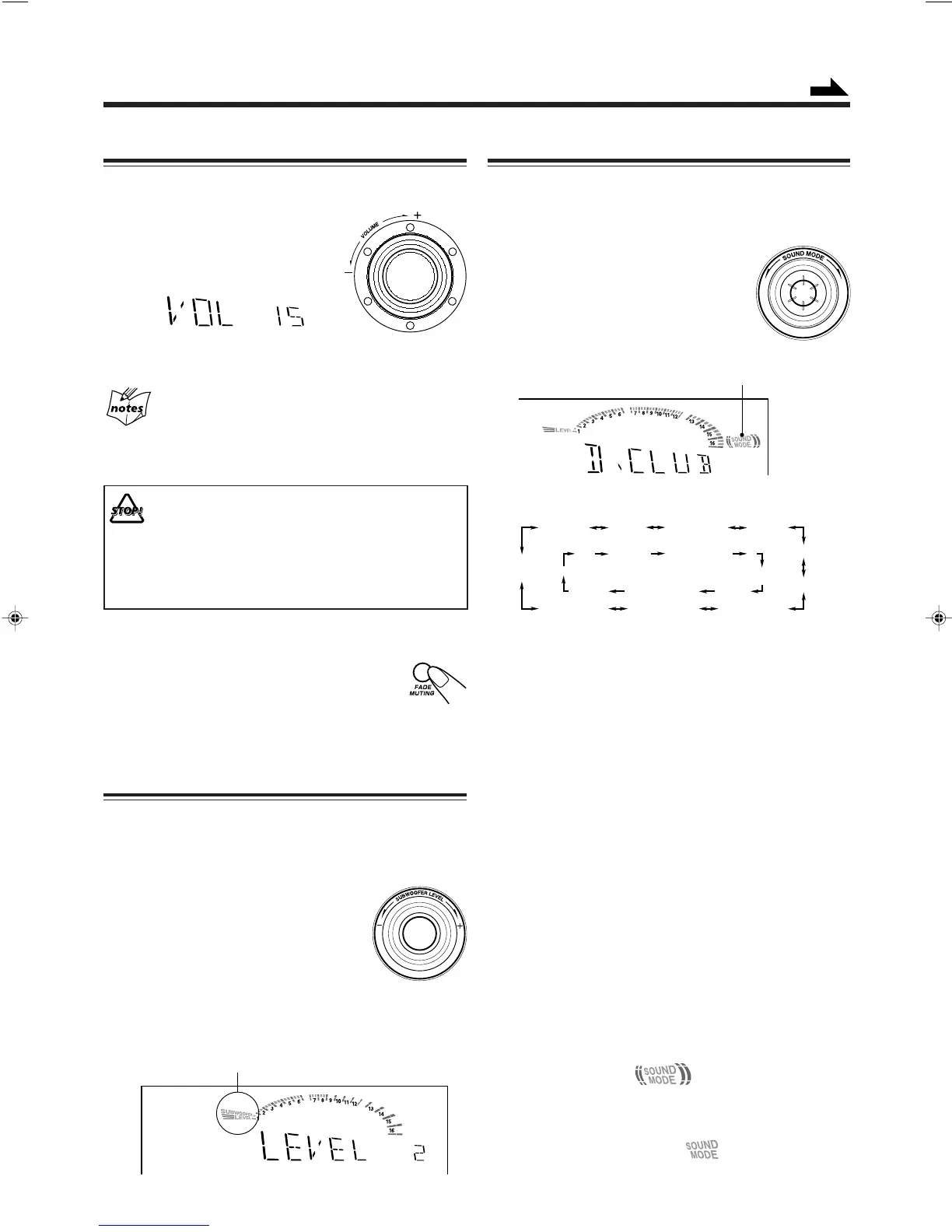 SUBWOOFER LEVEL + to increase the subwoofer volume
