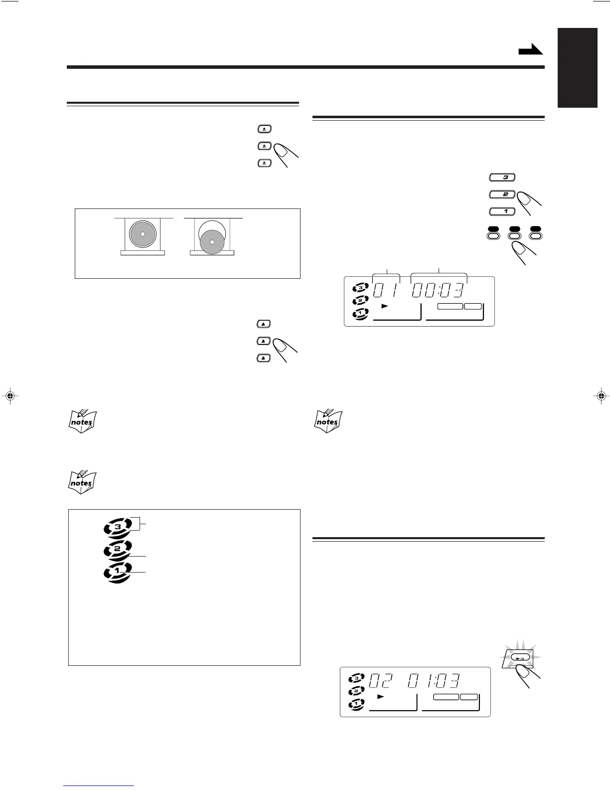 • When CD 1 is pressed : CD 1 ] CD 2 ] CD 3 (then stops)