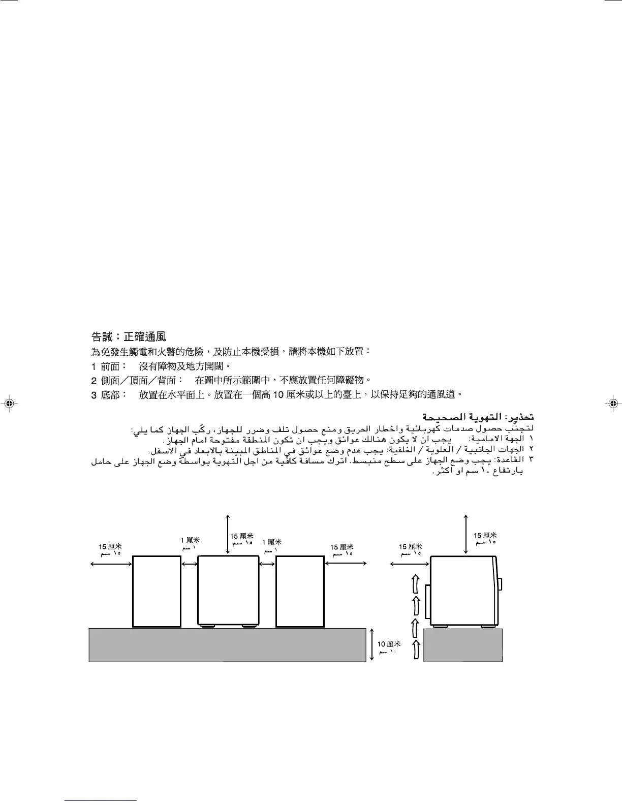 2 Sides/ Top/ Back: No obstructions should be placed in the areas shown by the dimensions below.