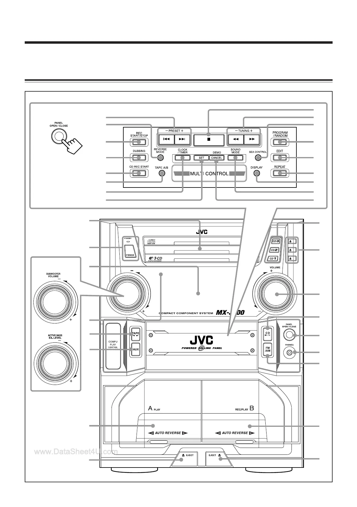 JVC MX-J506 - Front Panel; Location of the Buttons and Controls