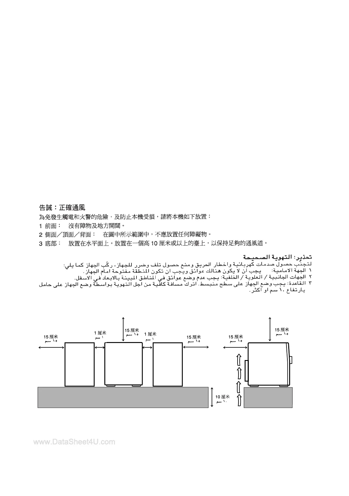 2 Sides/ Top/ Back: No obstructions should be placed in the areas shown by the dimensions below.