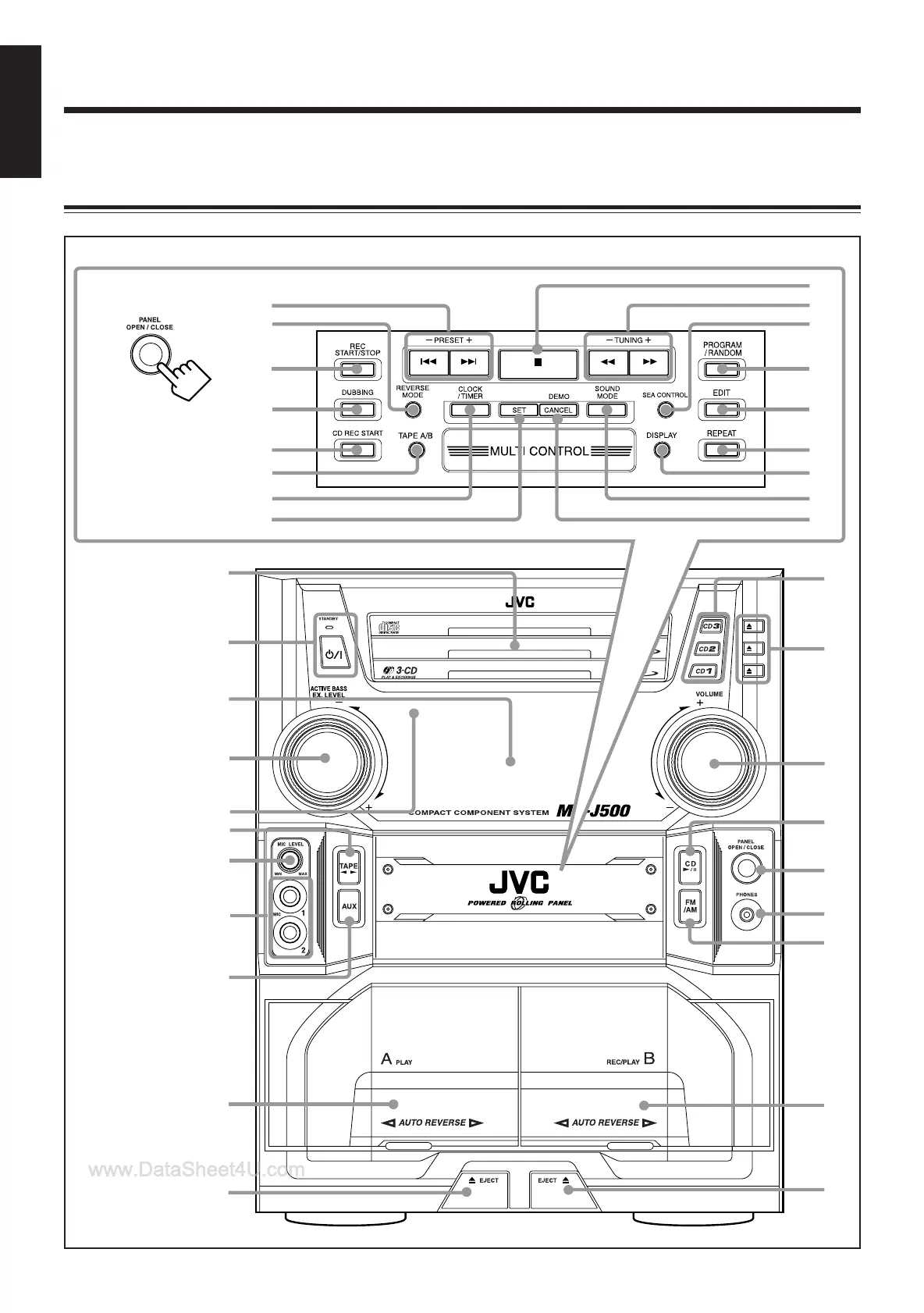 JVC MX-J506 - Front Panel; Location of the Buttons and Controls