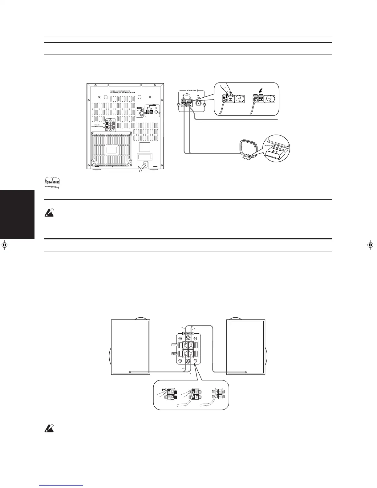 • Даже если Вы подсоединяете внешнюю антенну АМ (MW), оставьте внутреннюю антенну АМ (MW) подсоединенной.
