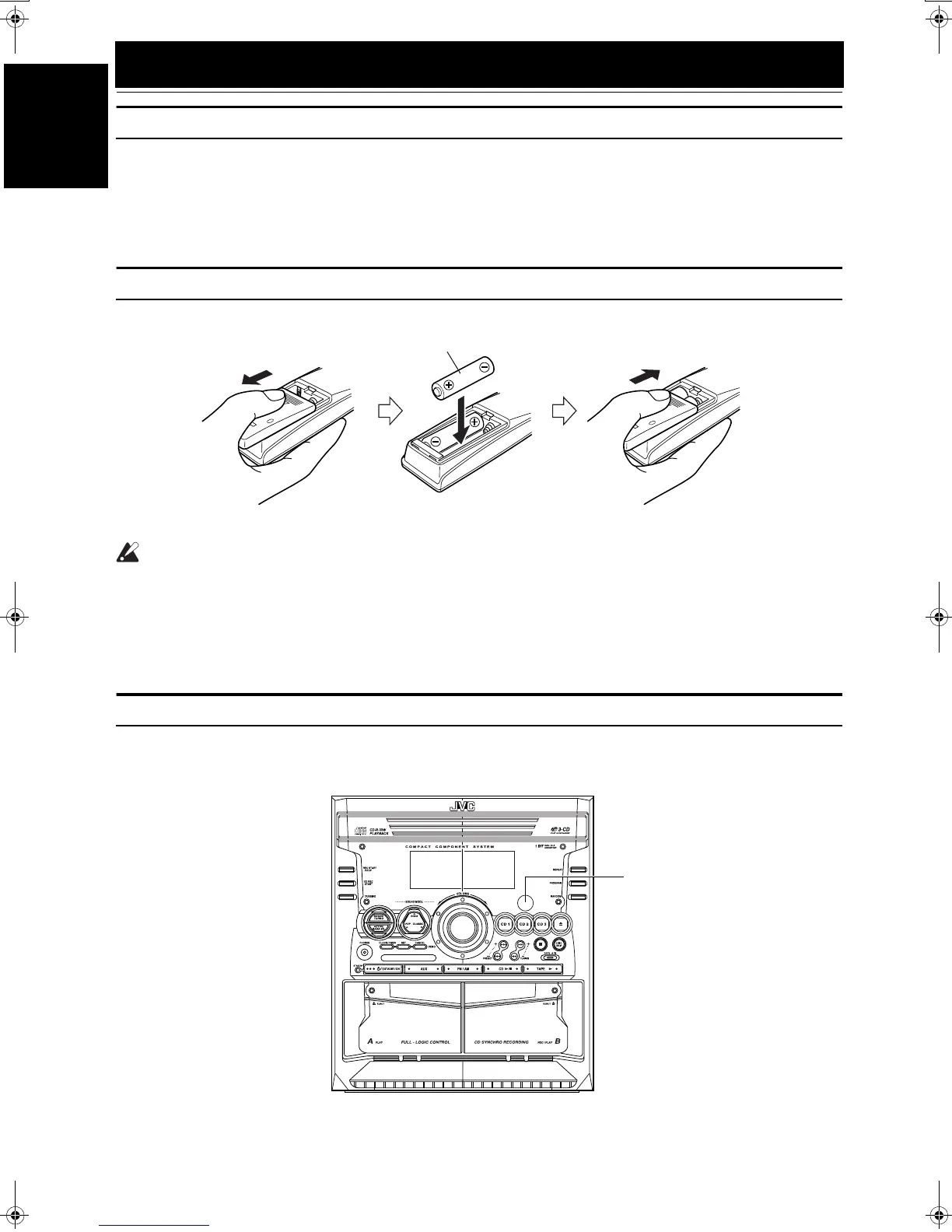 • Remove batteries when the Remote Control will not be used for a long time.