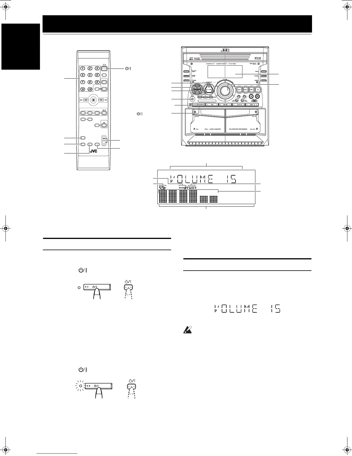 the volume or press the VOLUME – button on the Remote Control