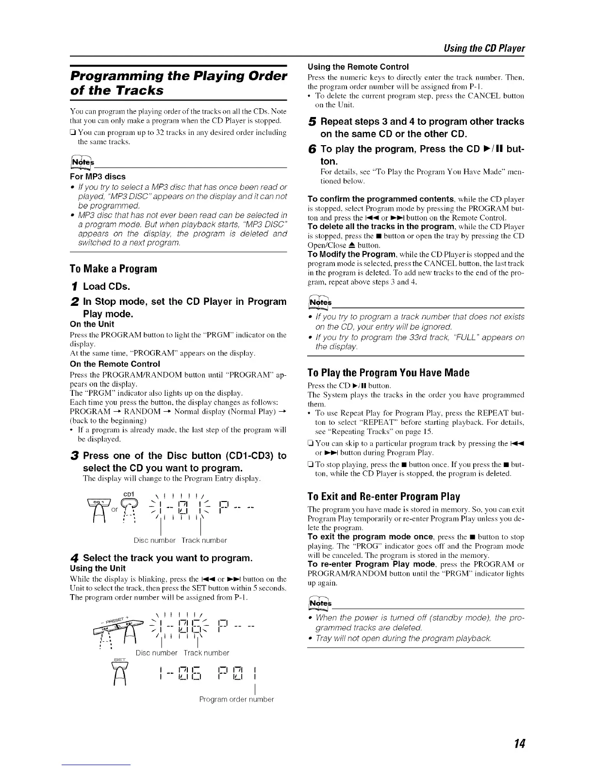 To Modify the Program, while the CD Player is stopped and the