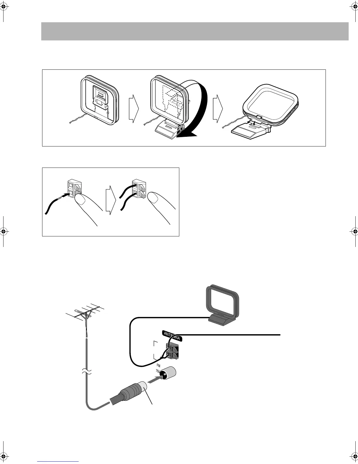 • Make sure the antenna conductors do not touch any other terminals, connecting cords and power cord. Also, keep the