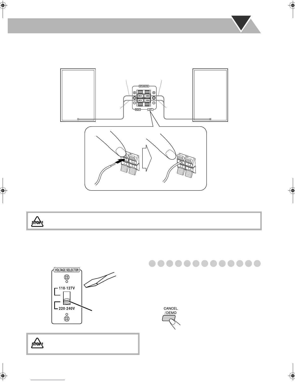 • DO NOT allow the conductor of the speaker cords to be in touch with the metallic parts of the System.