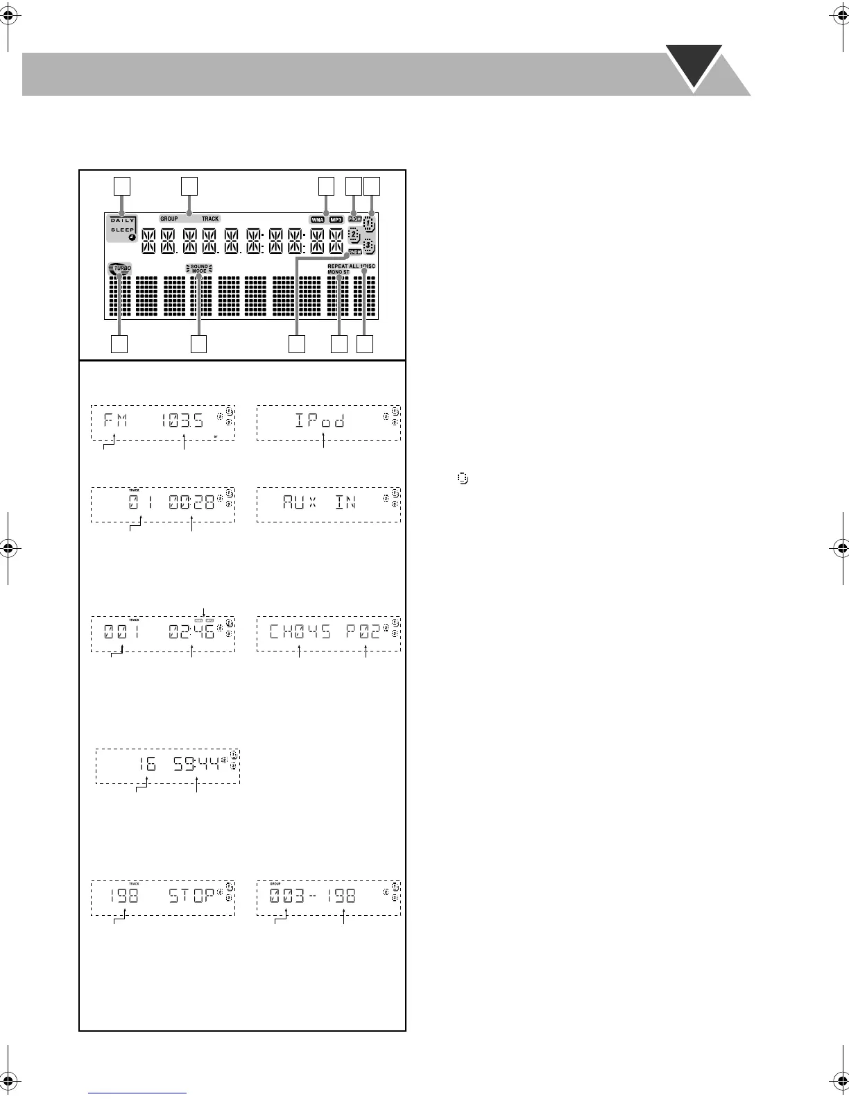 • TRACK: Lights when disc (CD, MP3 disc, WMA disc)