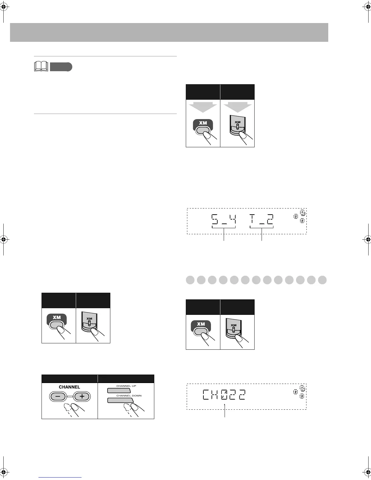 “XM” appears and then the channel number appears on