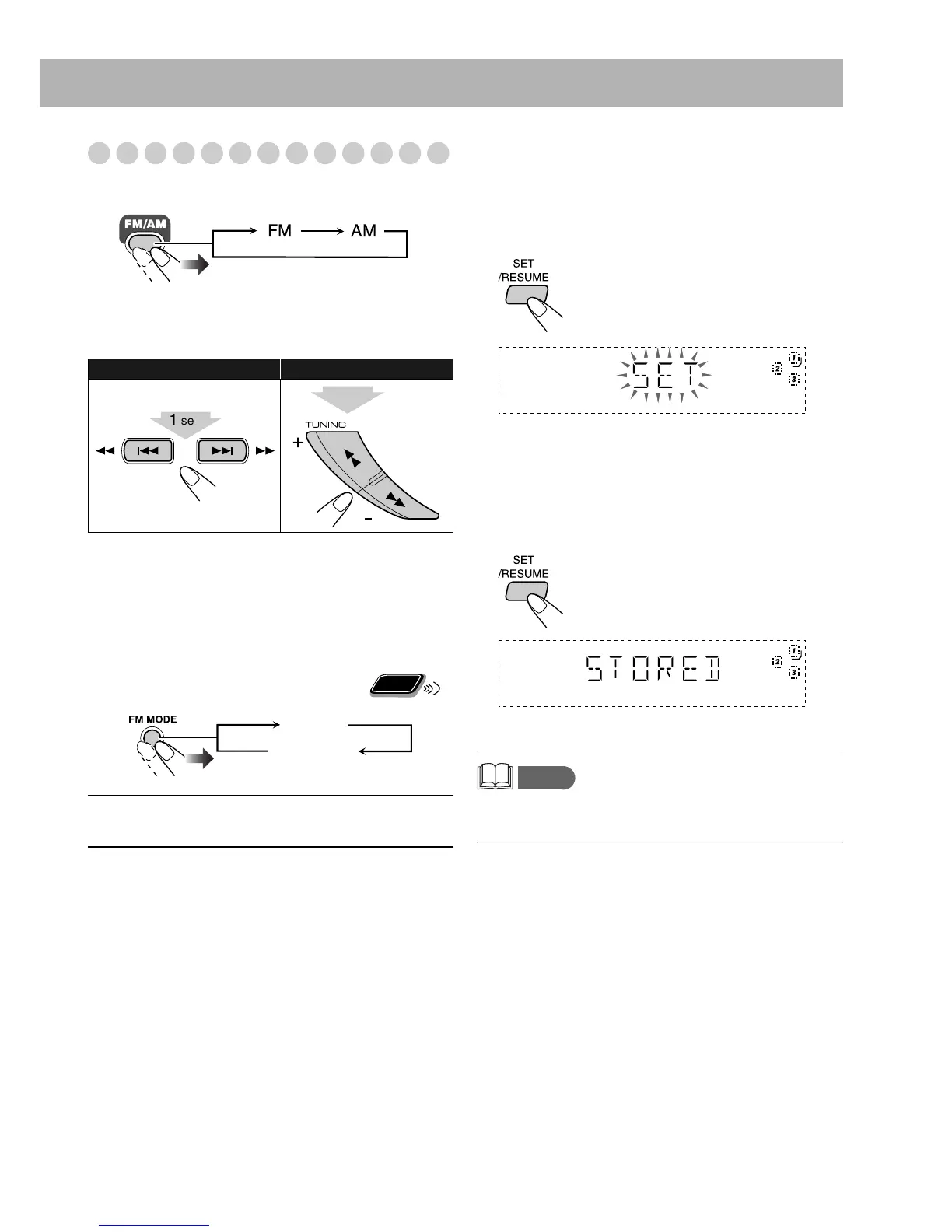 • If you preset a station set to MONO, the station is stored
