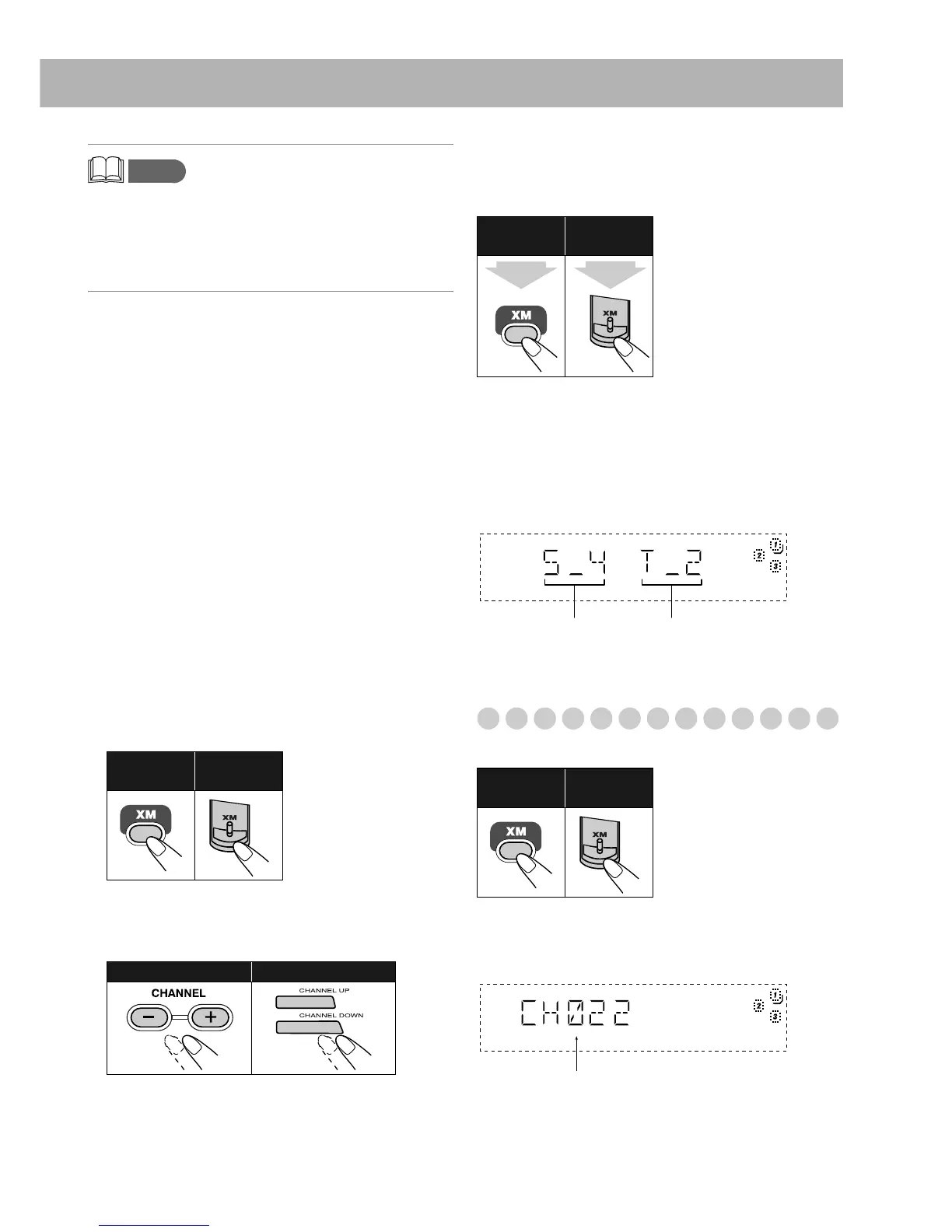 “XM” appears and then the channel number appears on