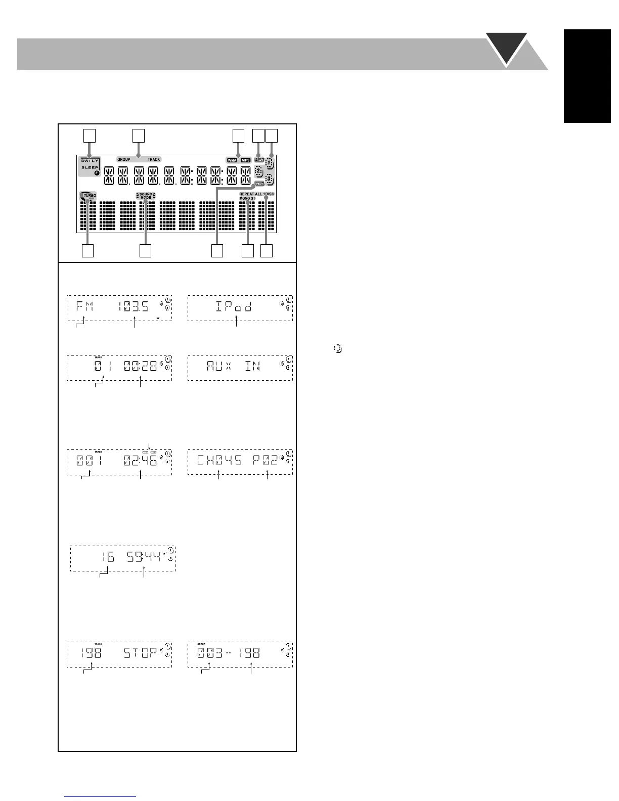 • TRACK: Lights when disc (CD, MP3 disc, WMA disc)