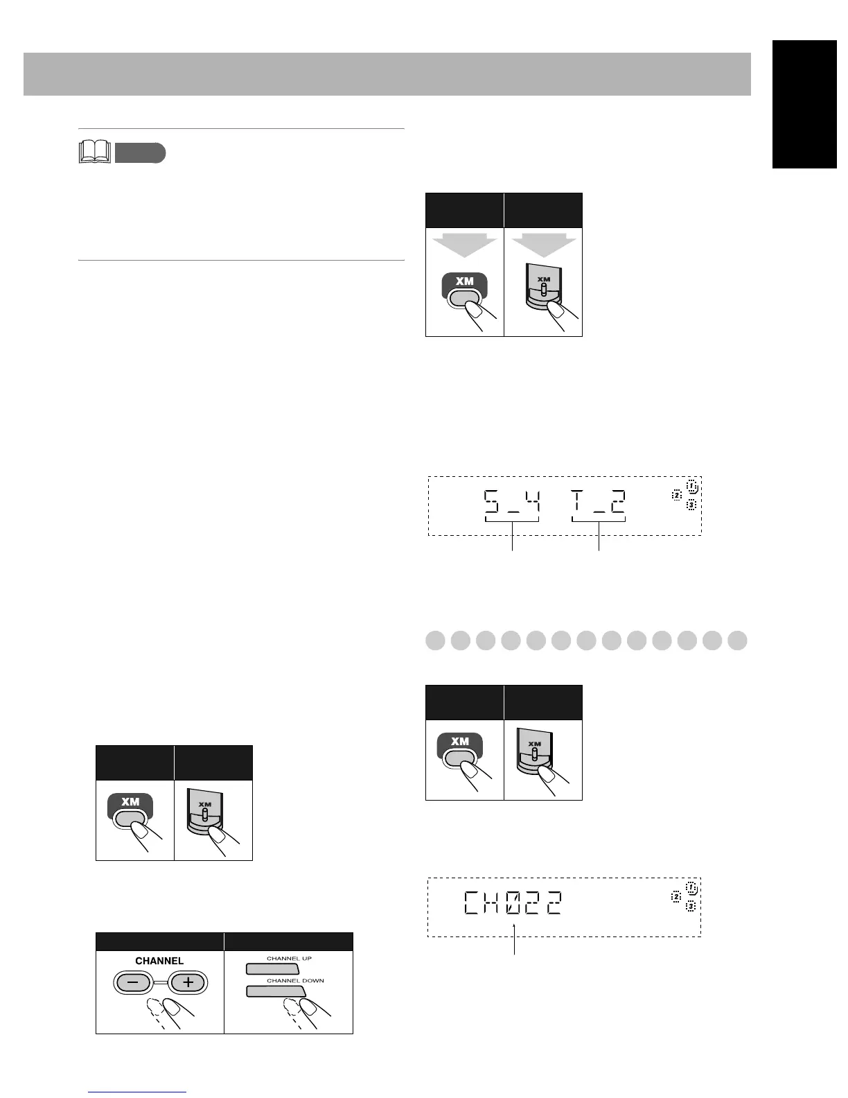 “XM” appears and then the channel number appears on