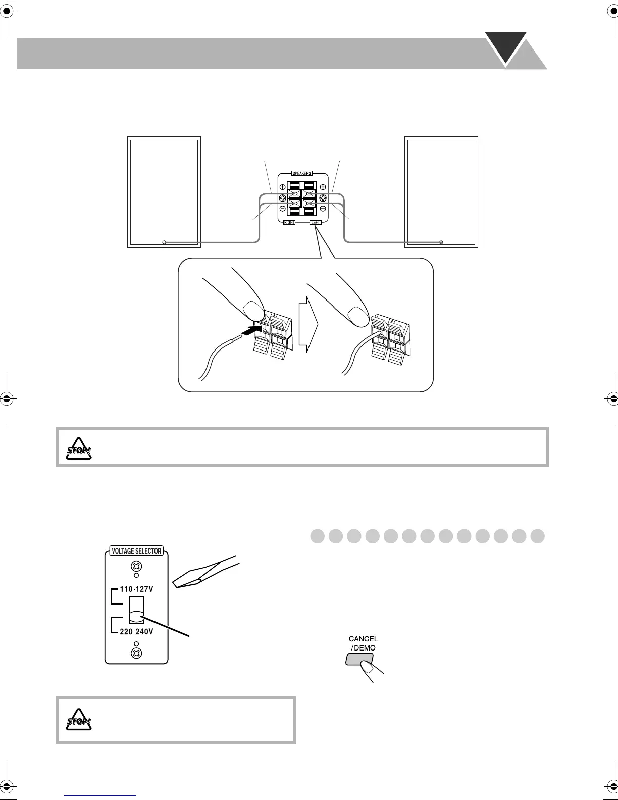 • DO NOT allow the conductor of the speaker cords to be in touch with the metallic parts of the System.