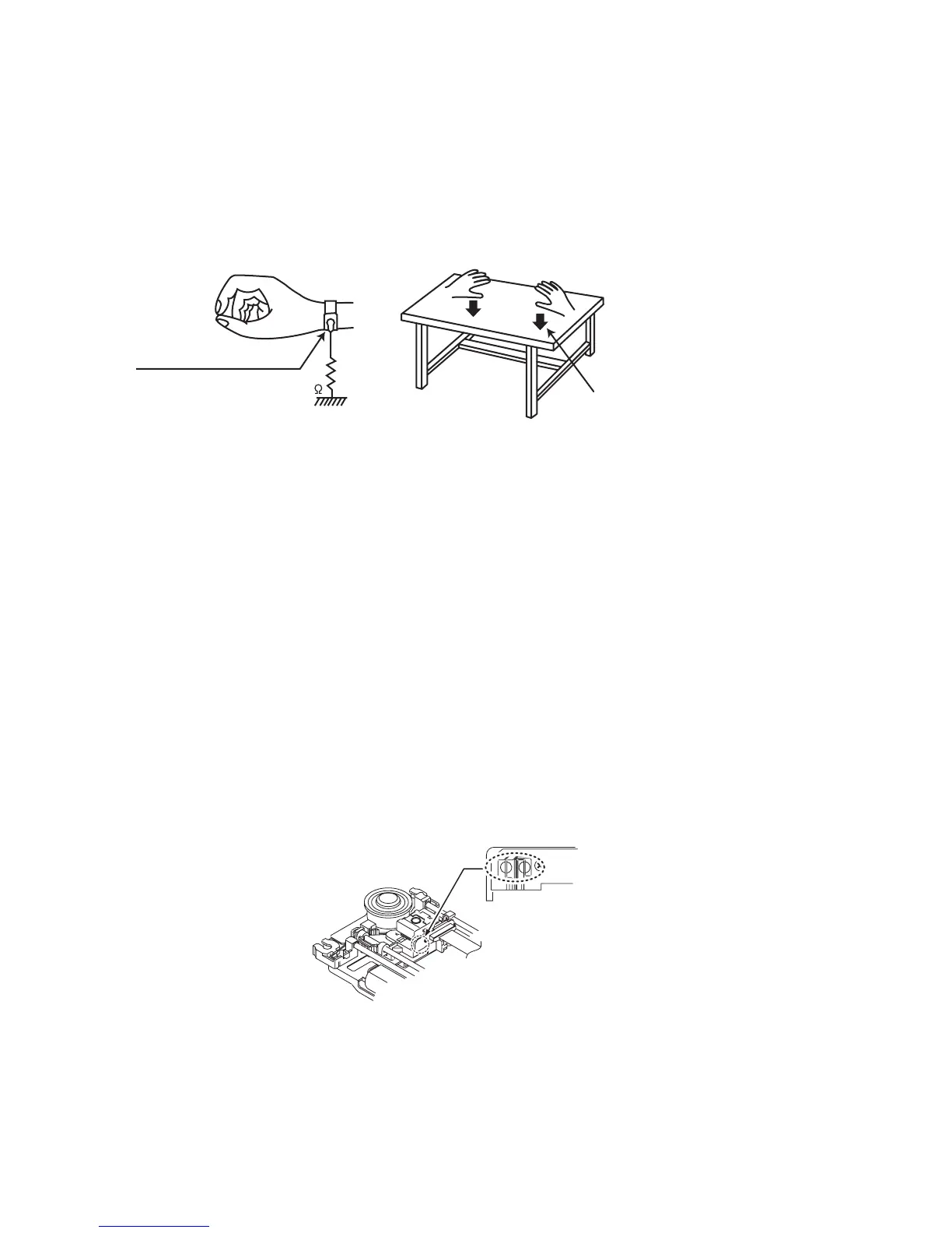 Static electricity in the work area can destroy the optical pickup (laser diode) in devices such as laser products.