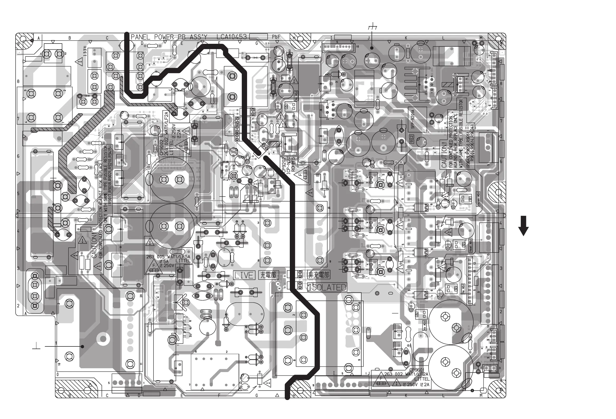 MAIN POWER PWB PATTERN [PARTS SIDE] [PD-42B50BJ/PD-42B50BU]