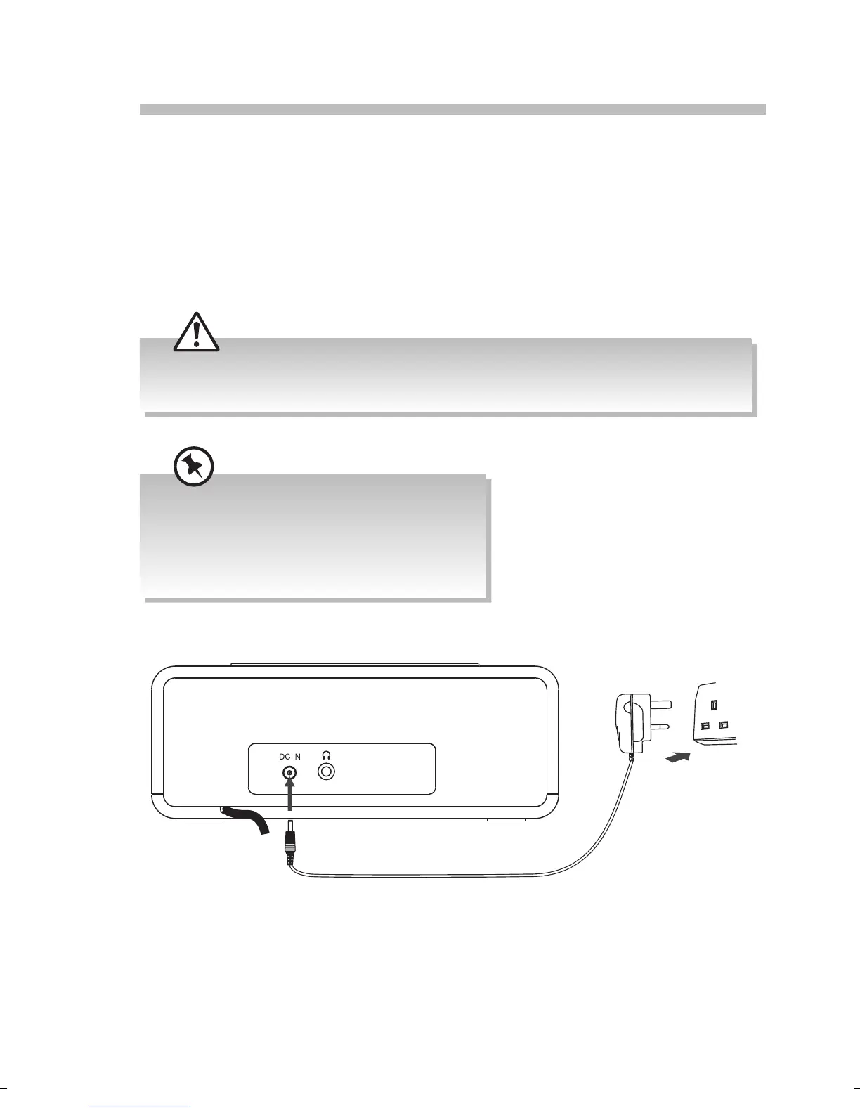 cable to the DC IN Socket at the rear of the unit and then connect the
