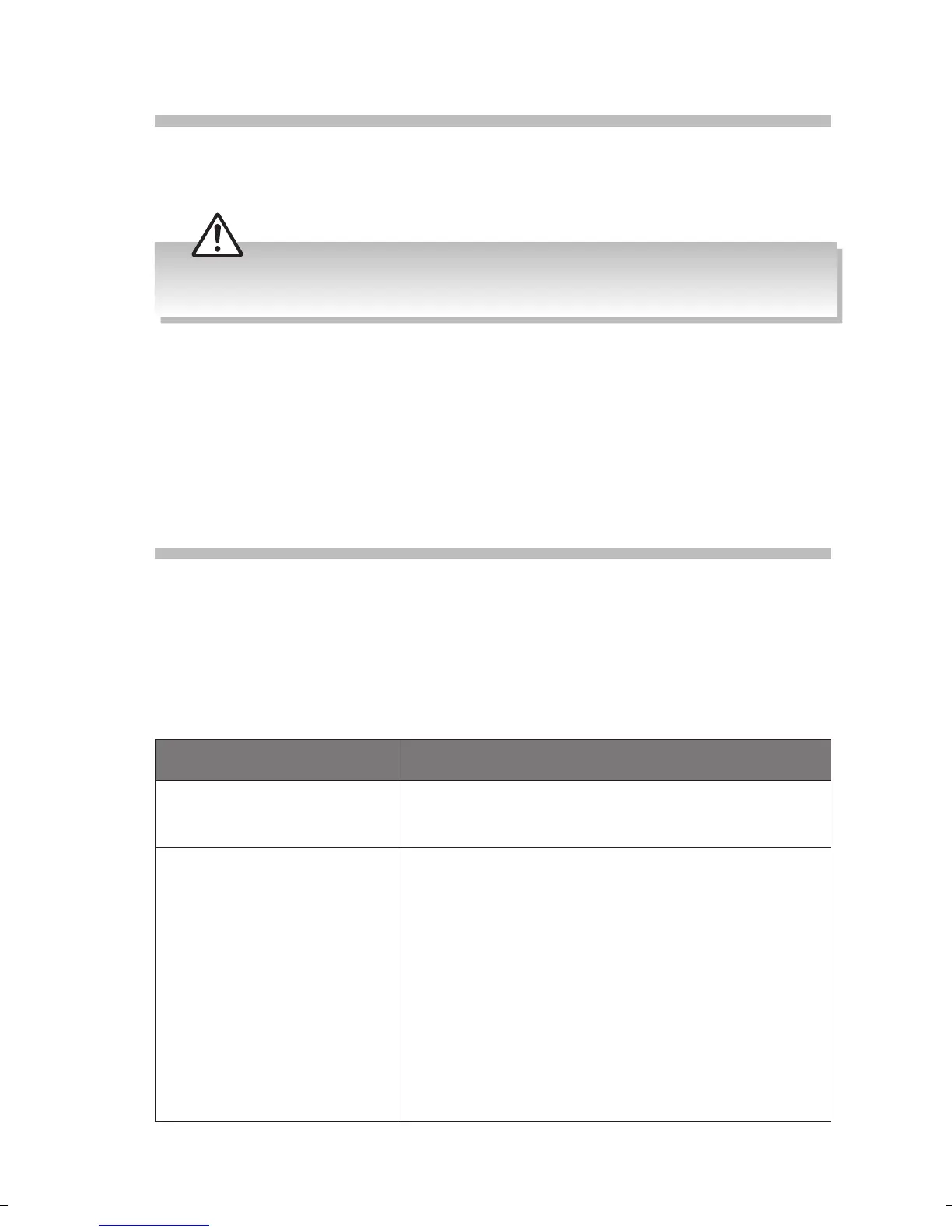 • Do not use any cleaning uids containing alcohol, ammonia or