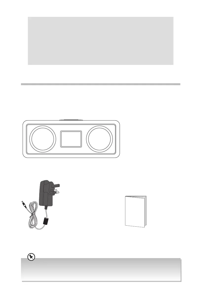 Remove all items from the packaging. Retain the packaging. If you dispose of it please do so