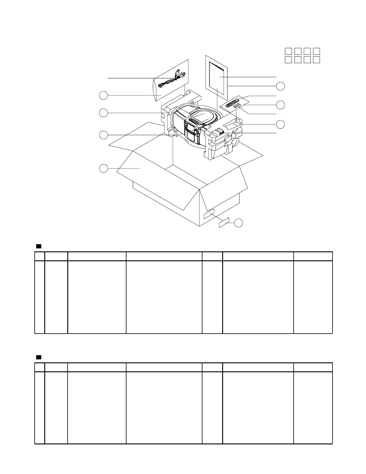 Packing materials and accessories parts list