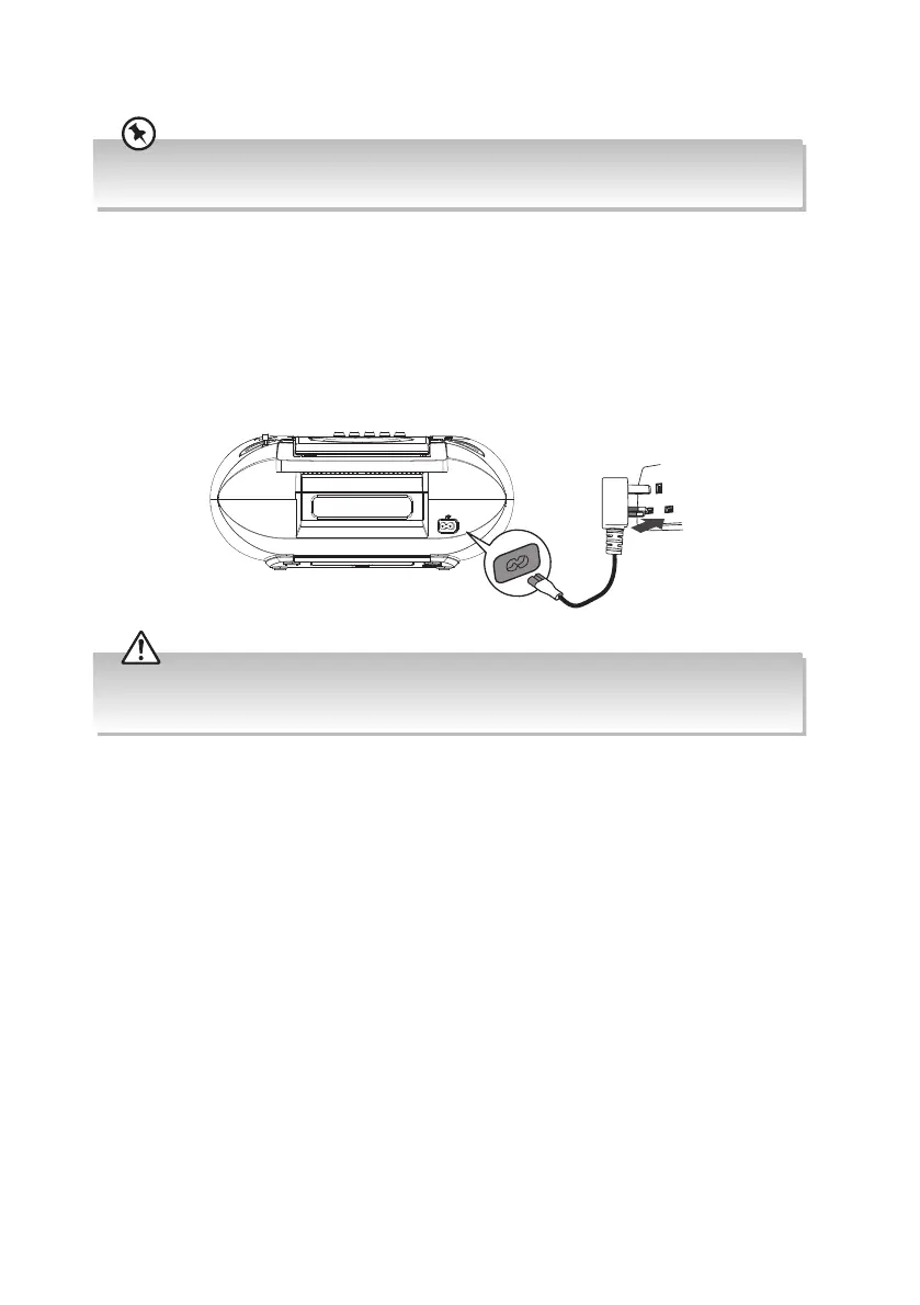2. Connect the mains cable to the AC~IN socket and the mains socket. The unit is now