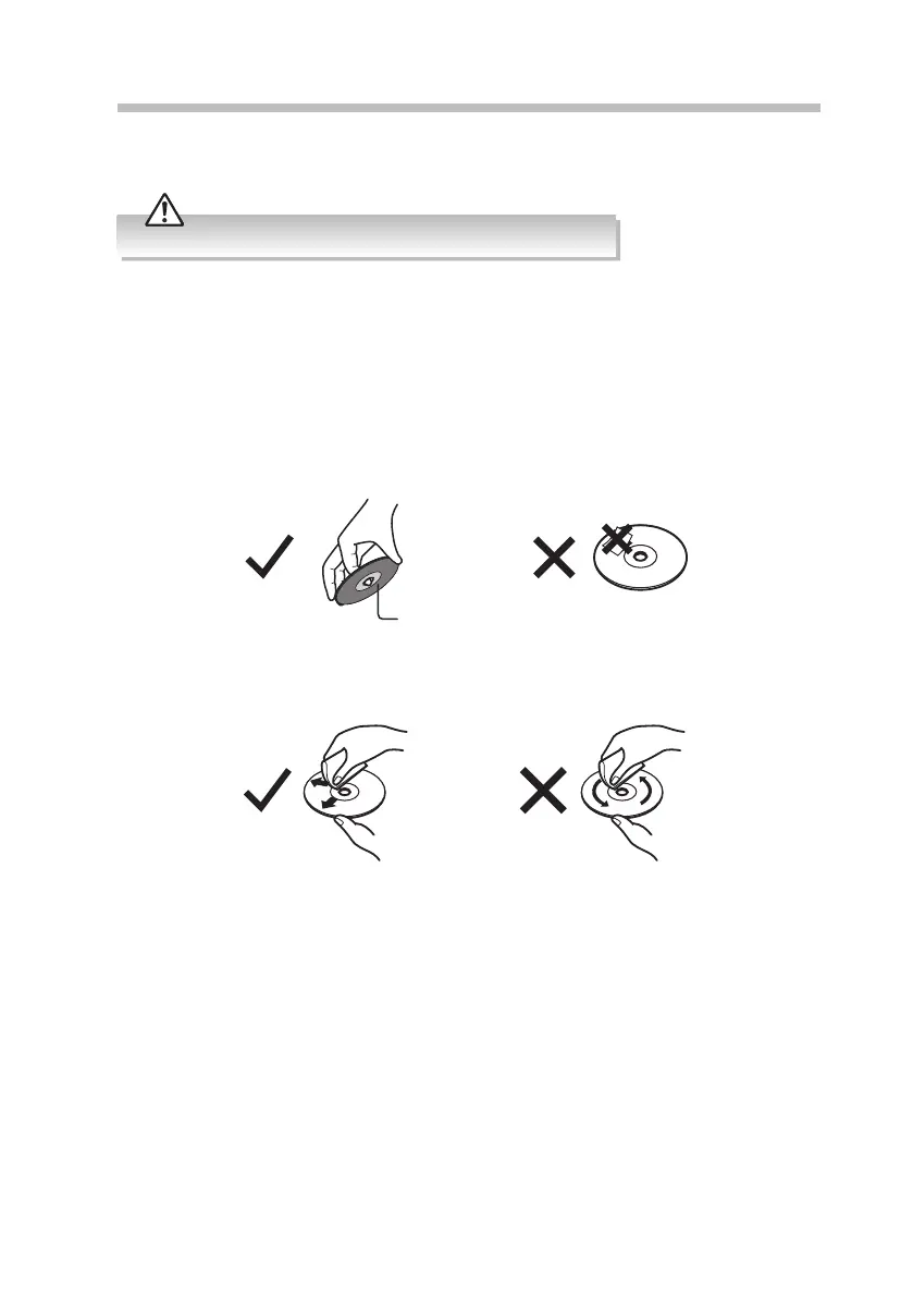 • Fingerprints and dust on the disc cause picture and sound deterioration. Wipe the disc