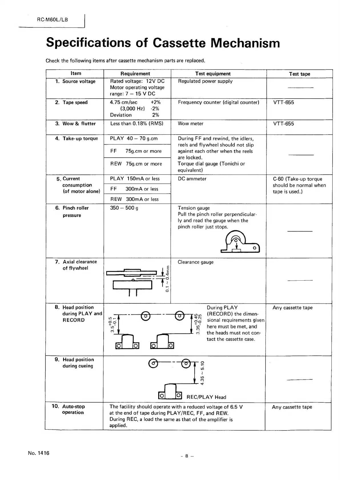 JVC RC-M60L - Specifications of Cassette Mechanism